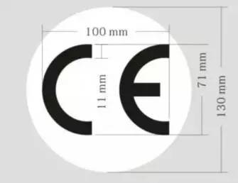 CE標記是法律標記,可以按一定比例放大和縮小。也可以看成是兩個相交的圓,兩個字母是等高的,字母“E”中間的一劃要比上下兩筆略短少許。CE標記高度不能低于5mm。